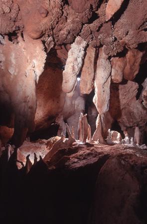São cavidades que podem alcançar um desenvolvimento linear de alguns quilómetros e se mostram ricamente ornamentadas com espeleotemas de rara beleza cénica (bolhas e tetraedos de calcite, vulcões, etc.) O rio subterrâneo que percorre uma das cavernas, a Gruta Talismã, reaparece a superfície na exsurgencia de Olhos de Água do Dueça.